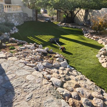 Transform your yard into an oasis with our artificial turf installation. Save water but still have the beauty with products that are pet friendly. We also offer pavers, gravel and landscape maintenance. We can do it!