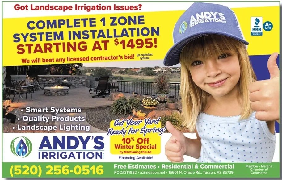 520-256-0516 andysirrigation@hotmail.com Arizona Registrar of Contractors CR-21 314982